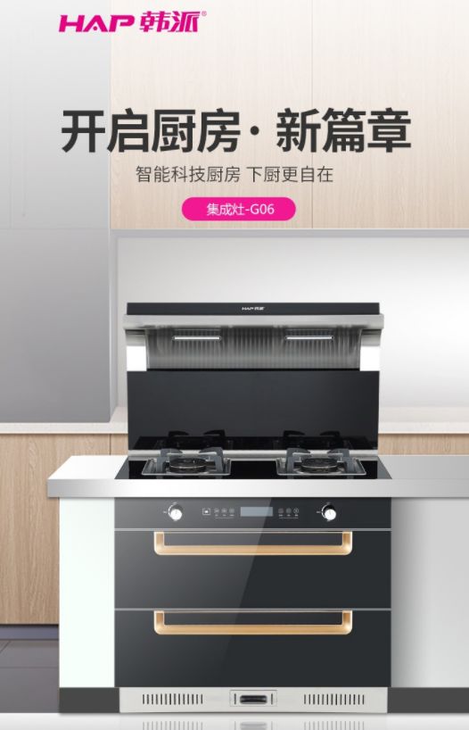 韓派集成灶將煙機、灶具、消毒柜、儲物柜合四為一,擴大廚房可用空間,采用嵌入式廚電設計理念出發(fā),讓集成灶與櫥柜形成一體化天衣無縫的結(jié)合,致力于一種置身于未來廚房的視覺沖擊。